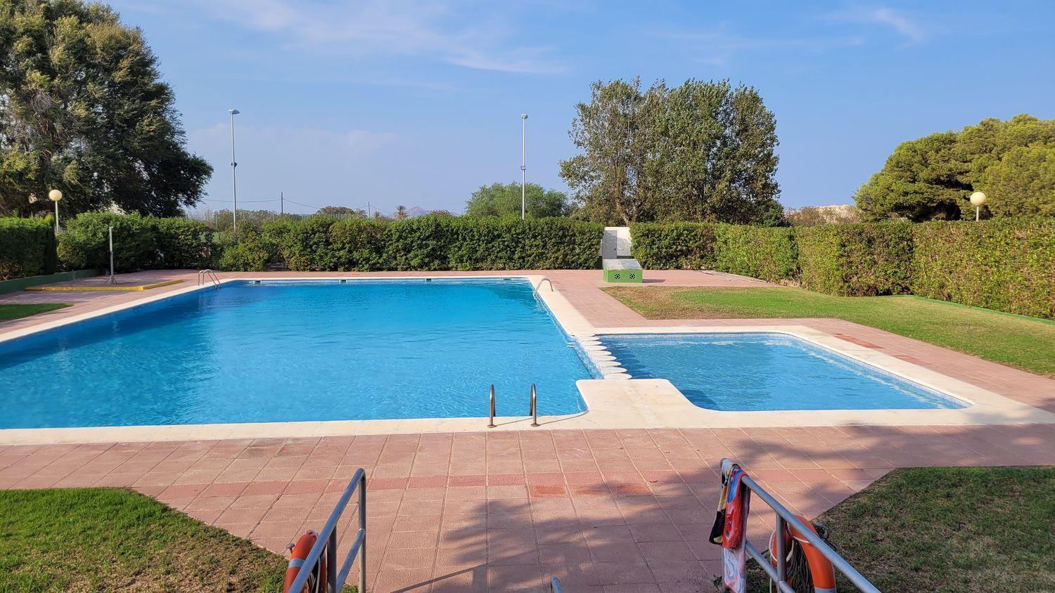 Dispone de jardín, piscina comunitaria, pista de tenis, futbol, zona de barbacoa.
